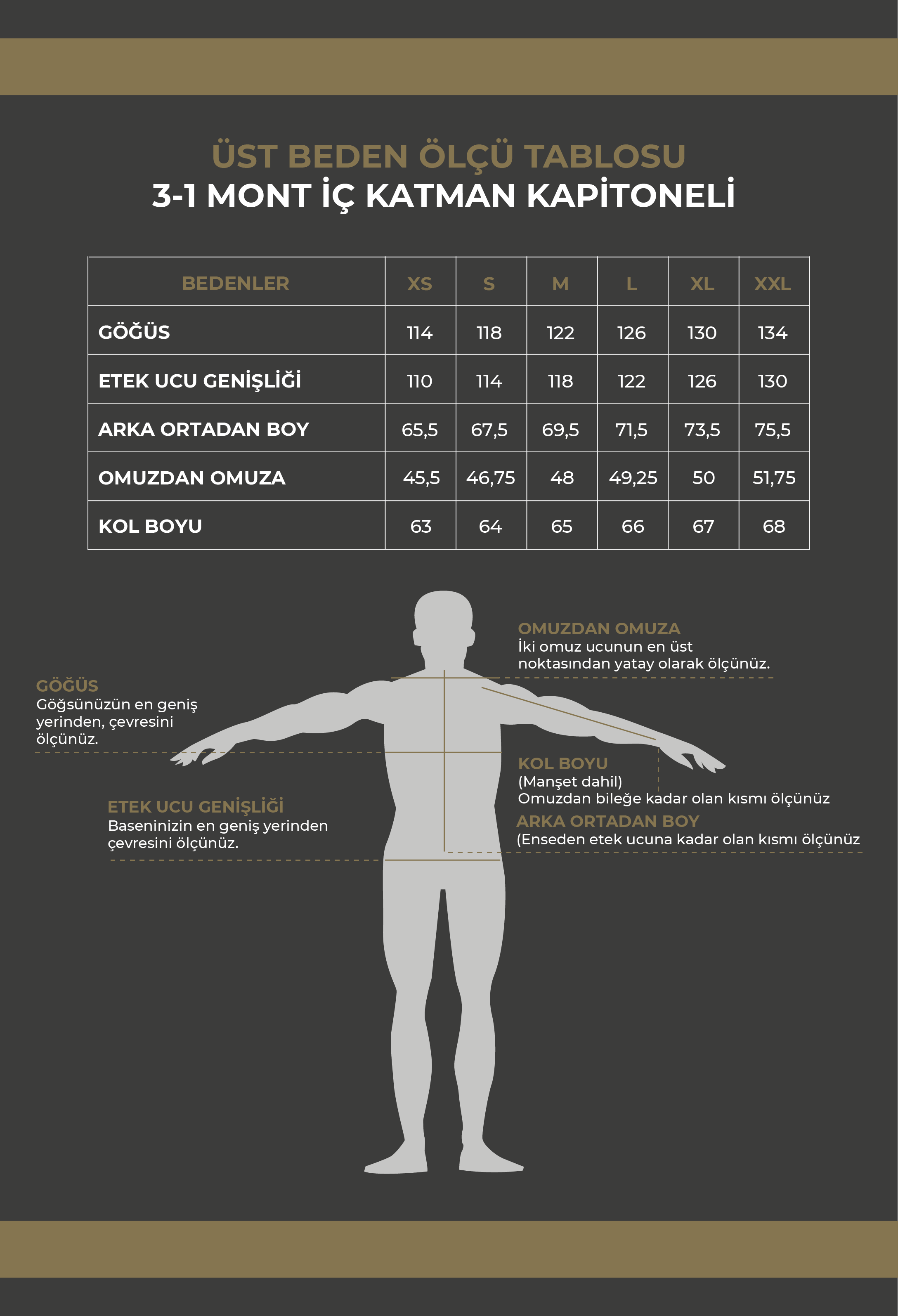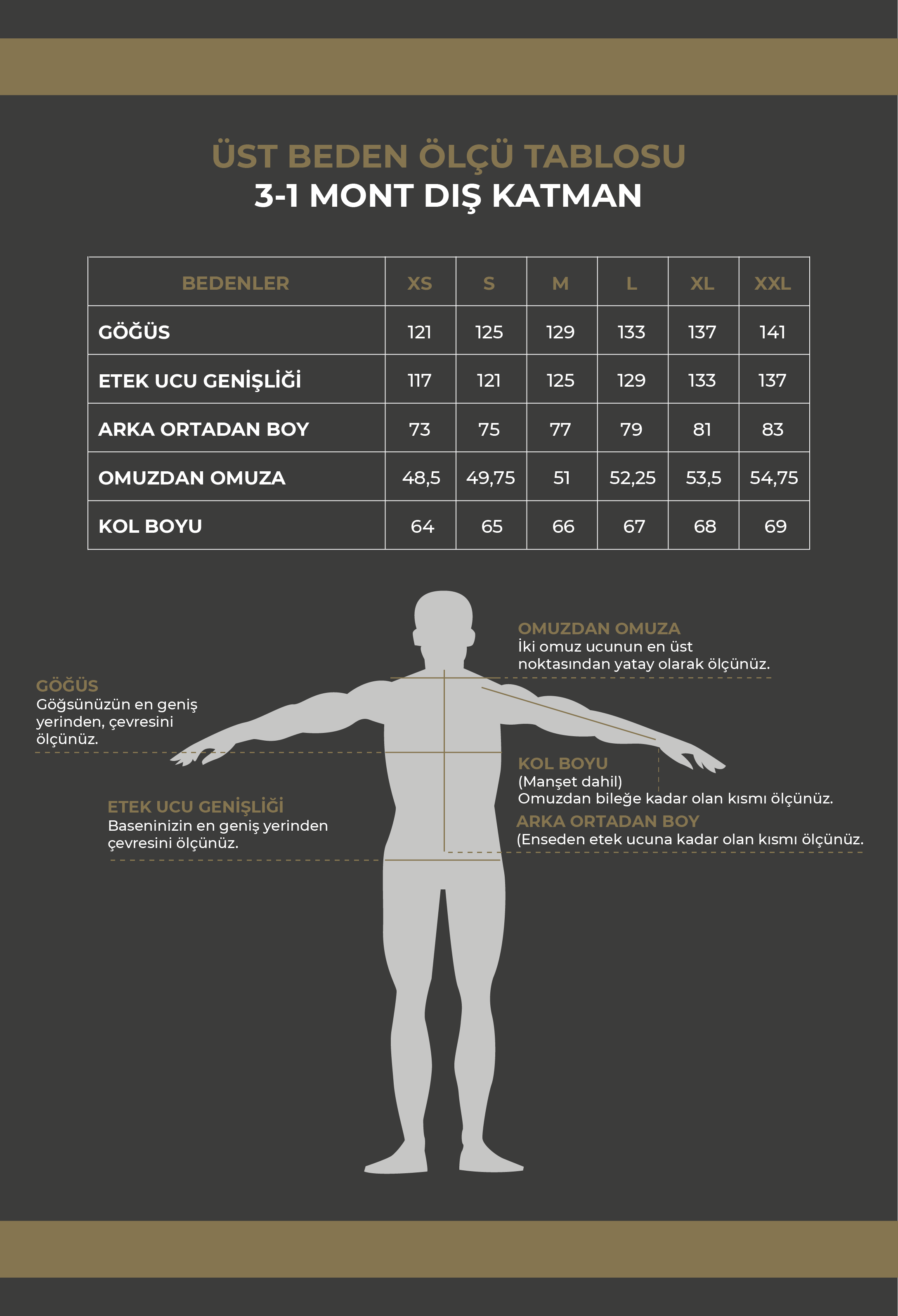 dış katman, yağmur ve sert rüzgâr karşısında güçlü bir bariyer oluşturur. Çıkarılabilir